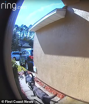 Security camera footage captured the labs racing out the front door together and loudly barking to garner attention as soon as they got outside.
